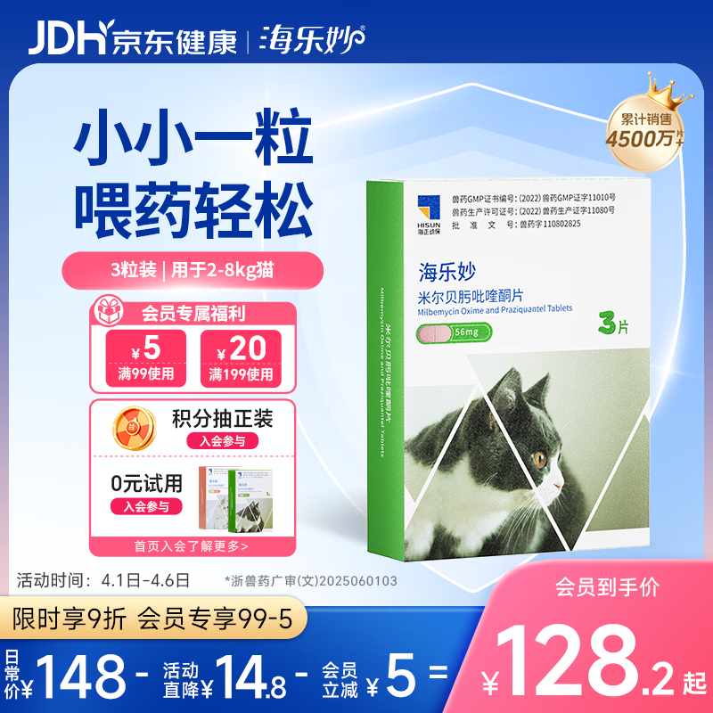 海乐妙猫咪体内驱虫药2-8kg(三片装)成猫打虫药防治寄生虫猫用