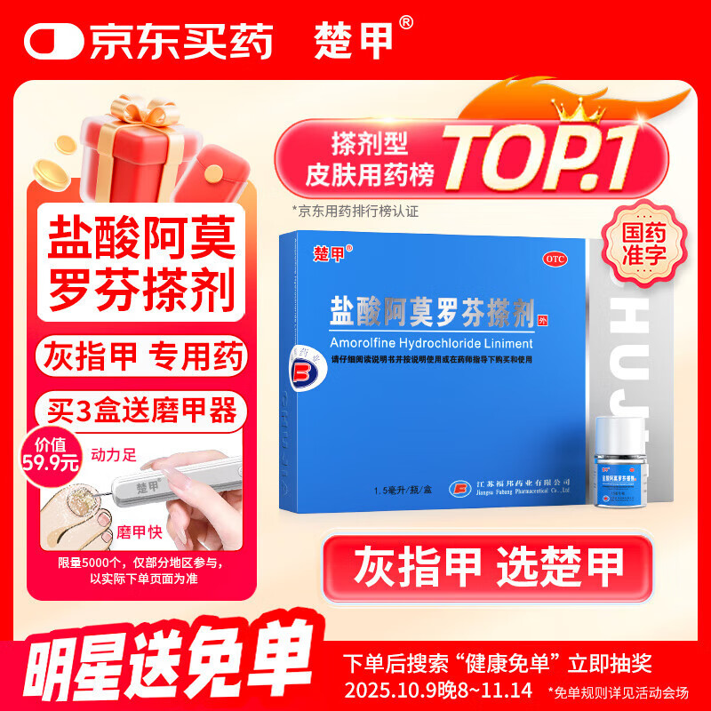 楚甲盐酸阿莫罗芬搽剂1.5ml国药准字治疗灰指甲专用药灰指甲正品真菌感染皮肤用药阿莫罗芬搽剂正品旗舰店