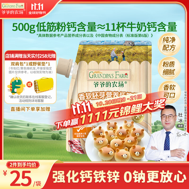 爷爷的农场香软胚芽营养低筋粉500g 儿童小麦面粉蛋糕松饼烘焙宝宝食谱