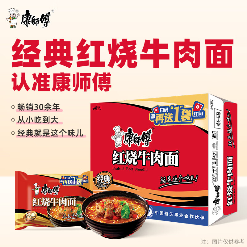 康师傅 方便面 经典红烧牛肉面103g*24袋 泡面袋装整箱速食 方便食品