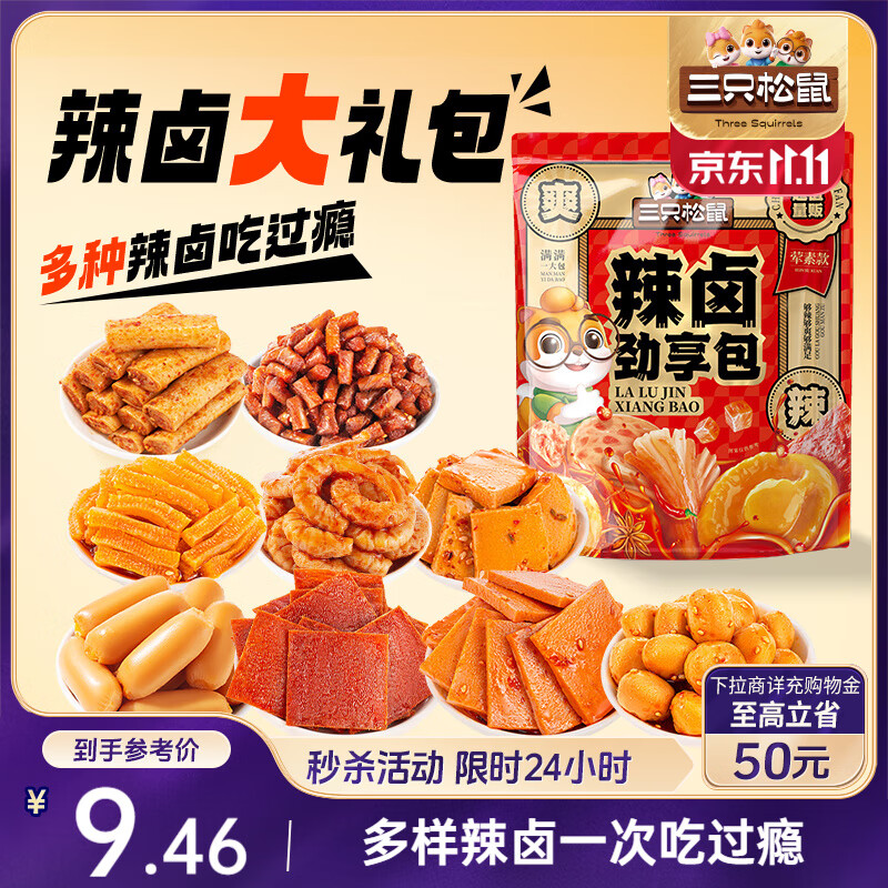 三只松鼠辣卤礼包30包 辣条大礼包辣片卤味素食办公室零食休闲零食214g