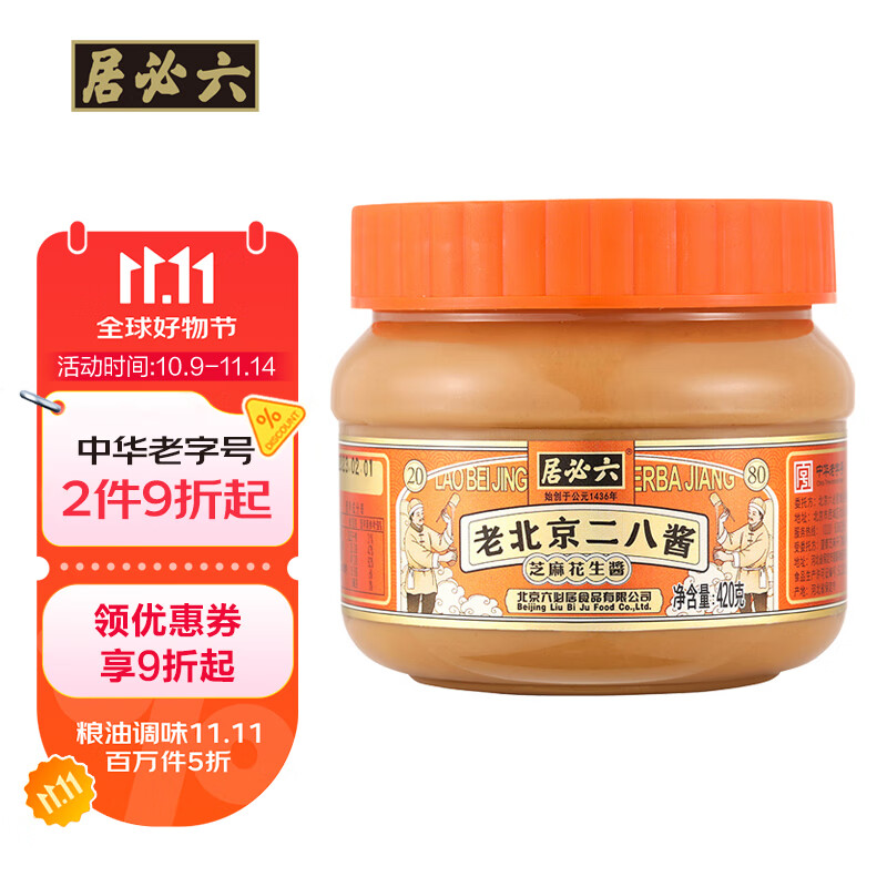 六必居 调味酱料 老北京二八酱 420g 芝麻花生酱 芝麻酱火锅蘸料