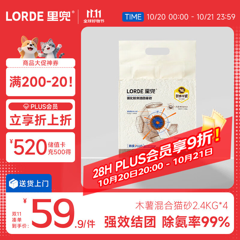 lorde里兜猫砂木薯混合猫砂豆腐钠基膨润土除臭黑核升级款2.4kg×4袋