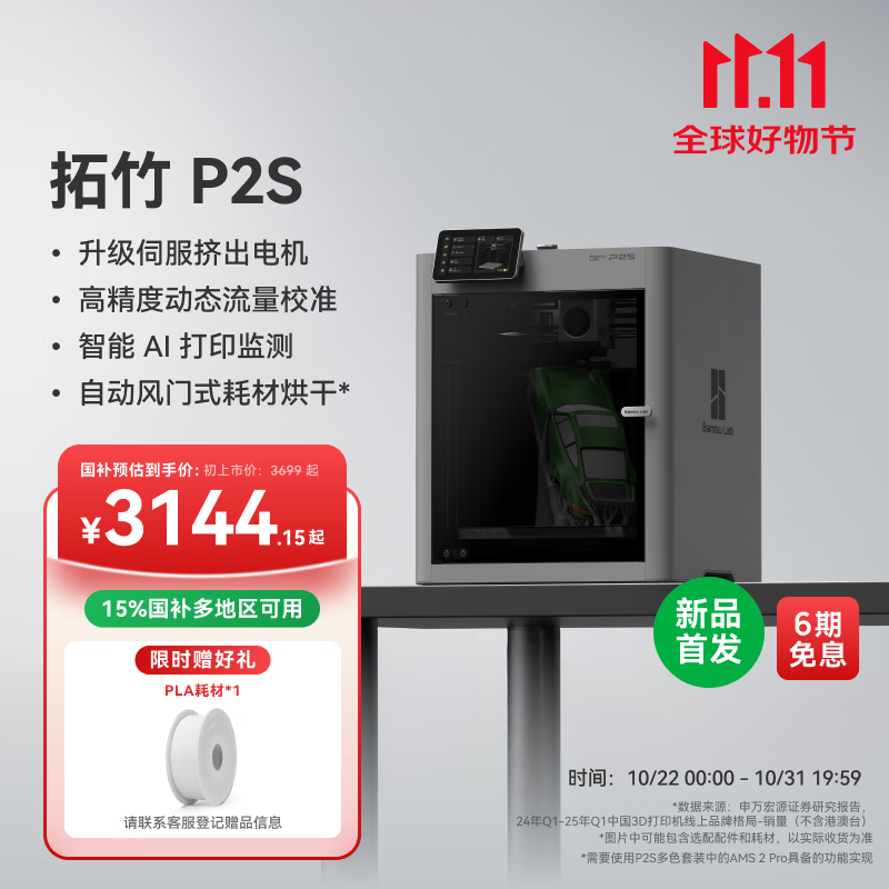 拓竹【新品预售15天内发货】P2S 3D打印机器大尺寸FDM家用桌面立体打印机高精度高速AI监测烘干P1S升级