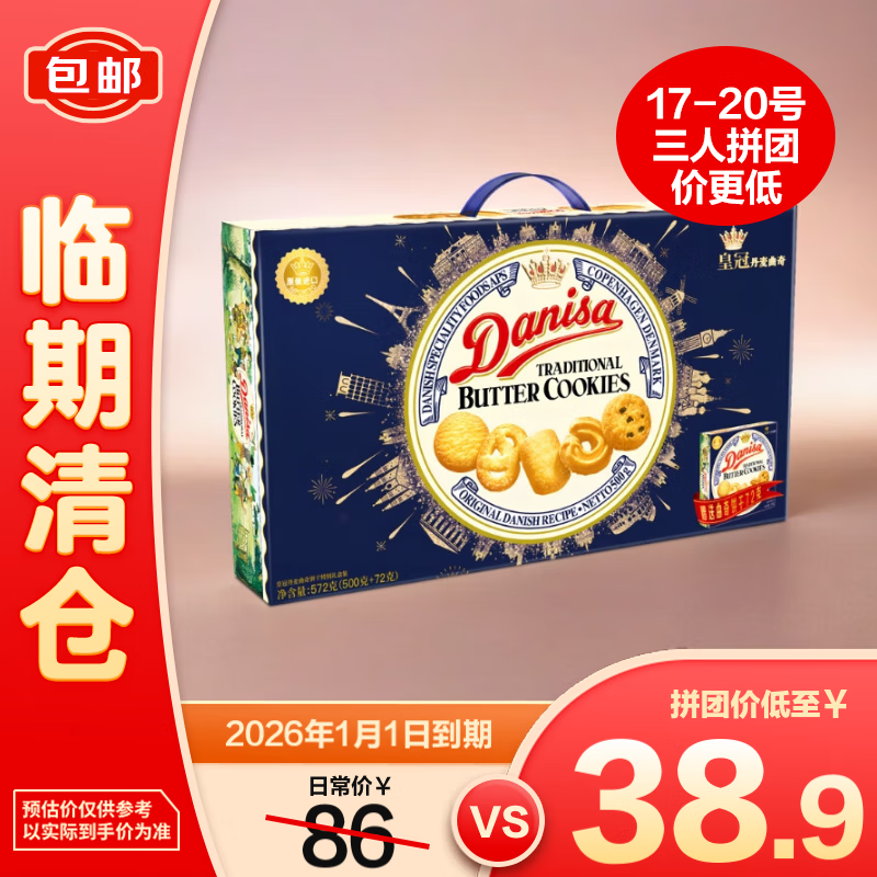 皇冠皇冠丹麦曲奇饼干礼盒500g*1盒+72g*1盒【临期清仓】