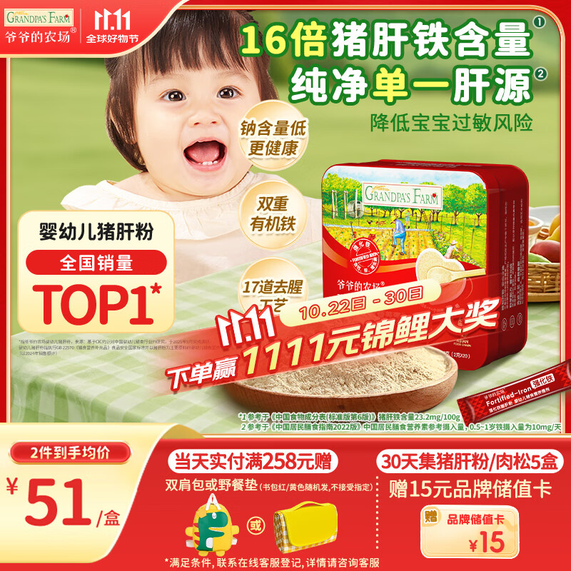 爷爷的农场婴幼儿强化铁猪肝粉40g 宝宝食用拌饭料辅食6月+ 小袋装