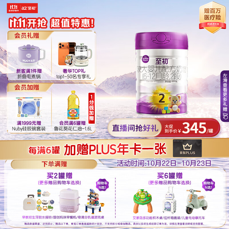 a2至初 2段较大婴儿配方奶粉(6-12月龄)850g 新西兰进口 新国标
