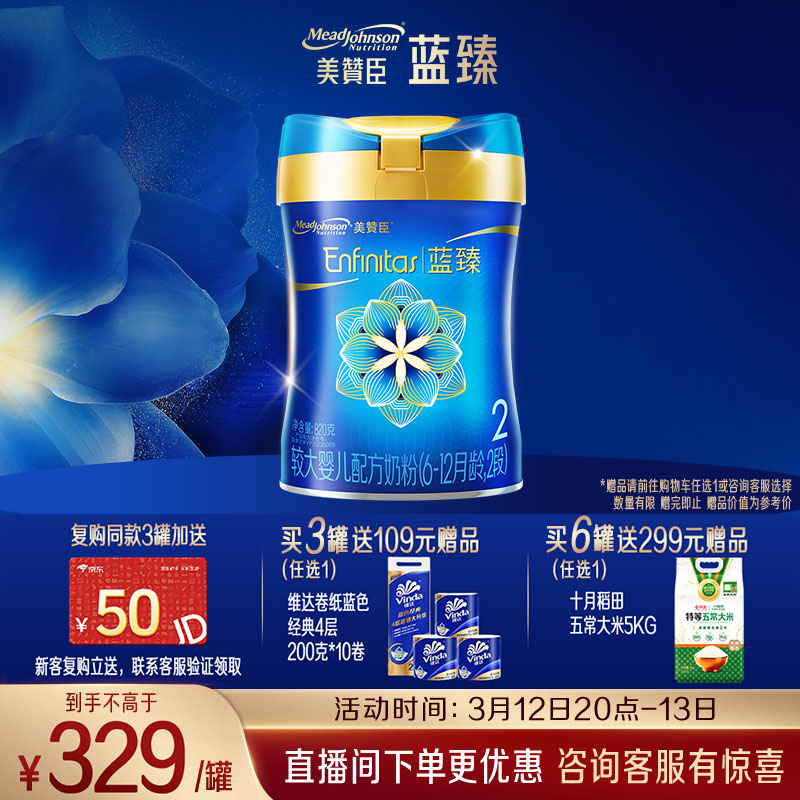 美赞臣蓝臻2段奶粉较大婴儿配方奶粉(6-12月)820g*1罐 乳铁蛋白
