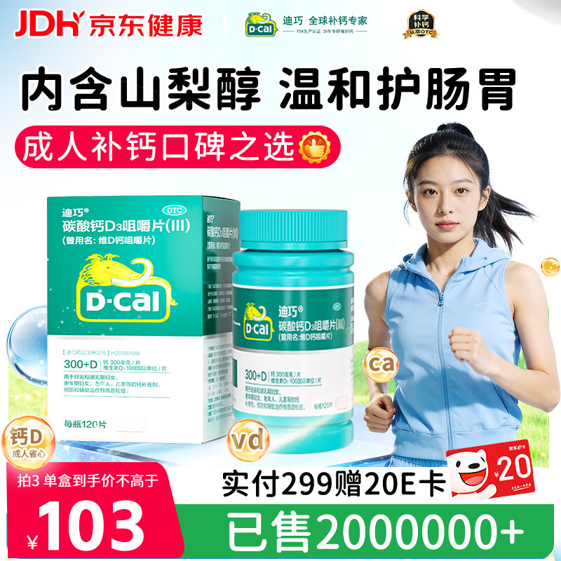 迪巧碳酸钙D3咀嚼片120片孕妇妊娠哺乳期妇女成年人钙片维生素d3中老年预防骨质疏松