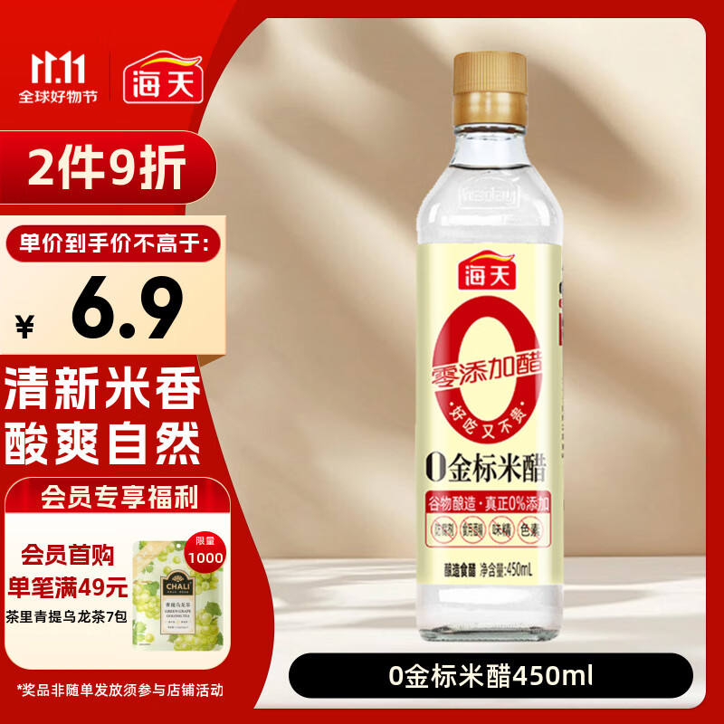海天 0金标米醋5度 450ml【0添加】点蘸凉拌 酿造食醋
