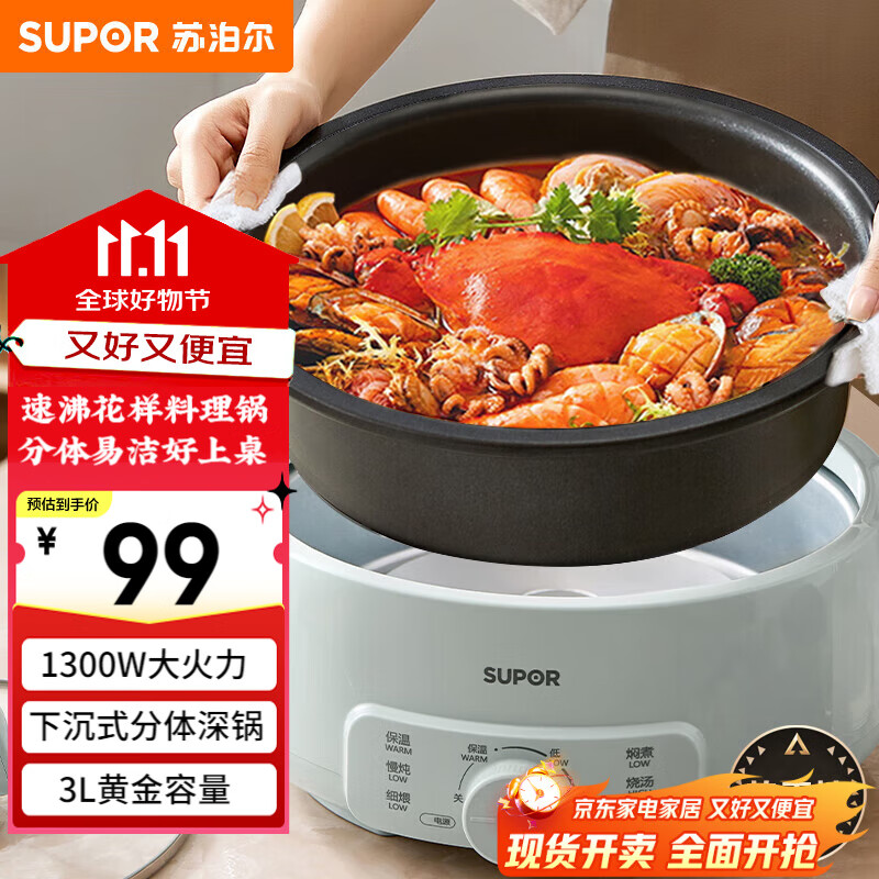 苏泊尔(SUPOR)电火锅 电煮锅 火锅专用锅 家用多功能涮肉锅 不粘分体可拆洗3L电热锅 电炖锅 多用途锅H30YK786
