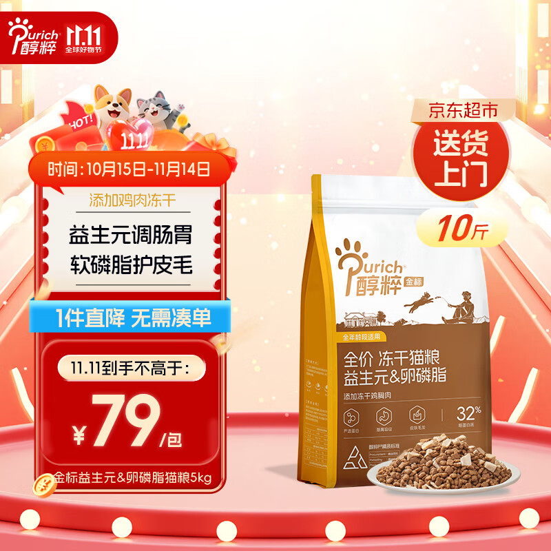 醇粹金标冻干猫粮全价鸡肉鱼肉猫粮营养均衡呵护肠胃 5kg【宠物金选】