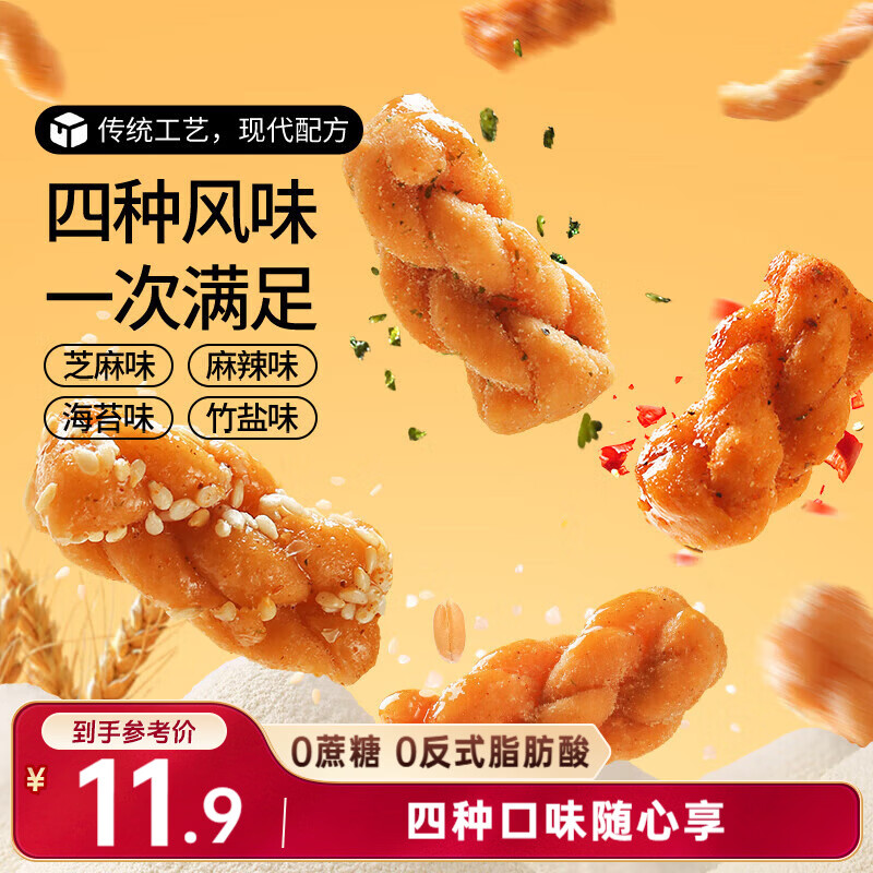 三只松鼠混合口味小麻花500g箱装芝麻麻辣海苔竹盐中式糕点点心下午茶酥脆