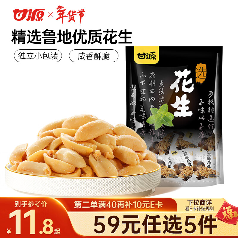 甘源牌椒盐味花生下酒花生米休闲零食品坚果炒货酒友圈花生仁小吃285g