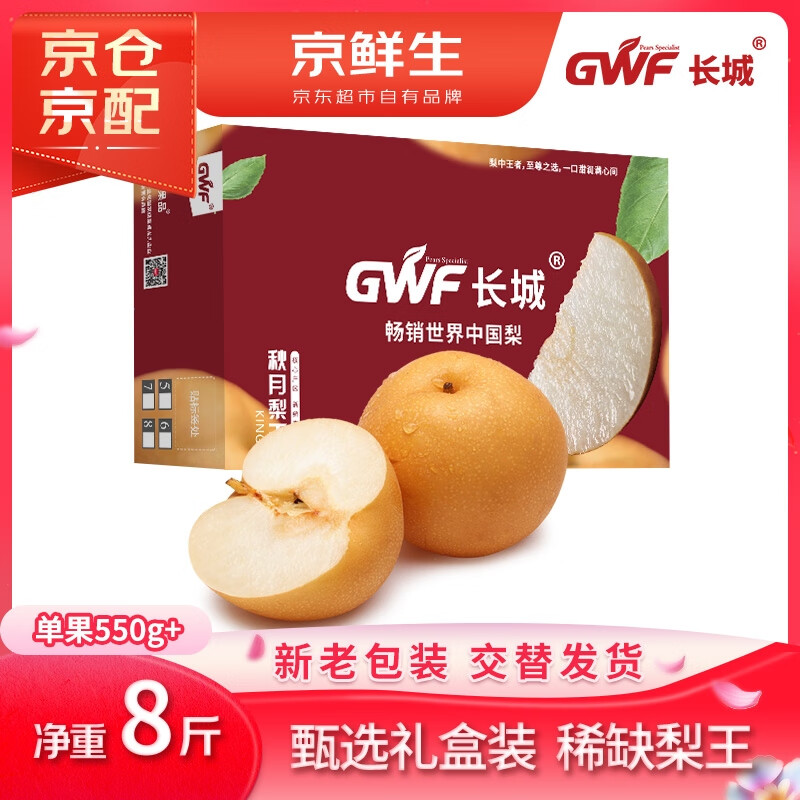 京鲜生 长城羊脂秋月梨 稀缺梨王 净重8斤5-7粒 550g+ 生鲜水果礼盒
