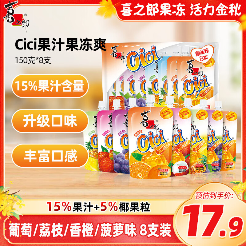喜之郎 果汁果冻爽150g*8支 吸的可吸果冻 加椰果粒 儿童休闲零食