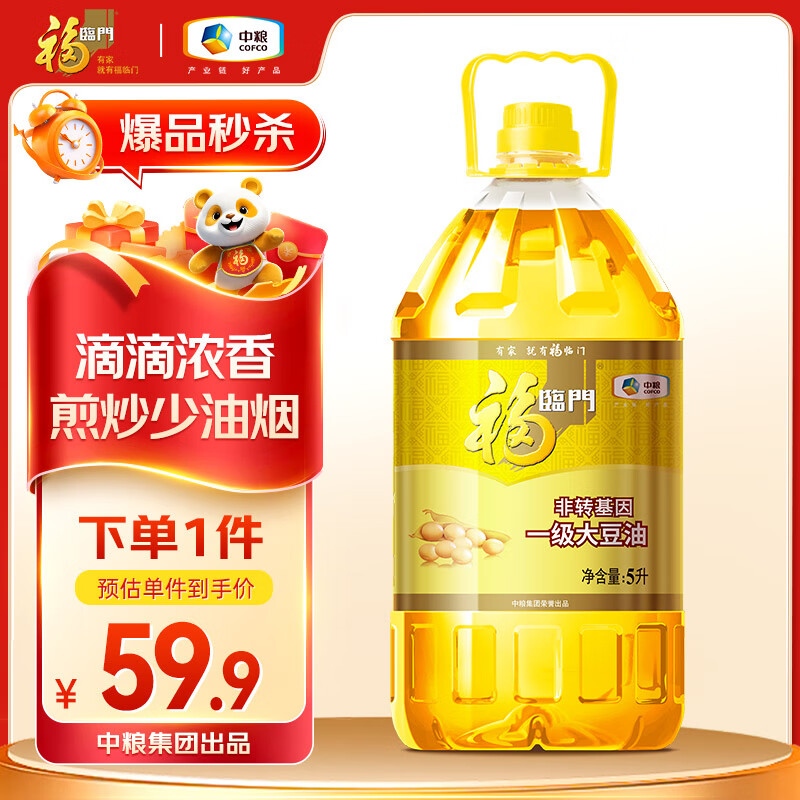 福临门食用油 非转基因一级大豆油5升植物油 中粮出品 新老包装随机发