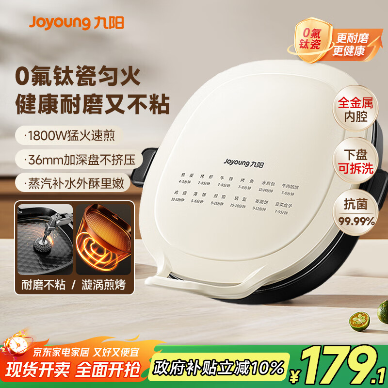 九阳(Joyoung)电饼铛三明治机早餐机 36mm加深烤盘 0氟钛瓷超耐磨少油 下盘可拆 漩涡加热大火力烙饼锅GK732
