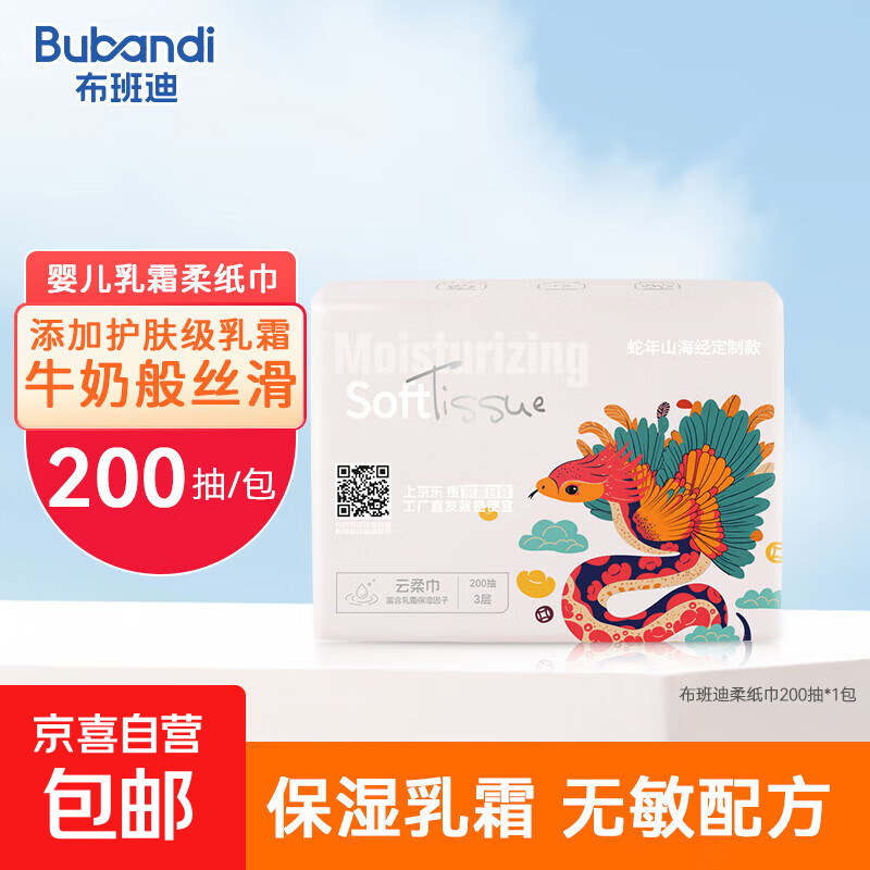 【山海经IP定制款】纸巾保湿云柔巾婴儿面巾抽纸宝宝乳霜纸巾 乳霜纸 3层 200抽*1包 【新老包装随机发货】