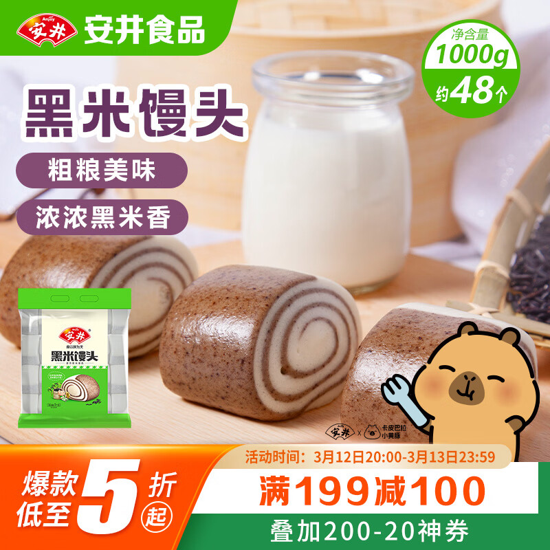 安井黑米馒头 1kg 2斤装约48个 杂粮馒头包子 传统加热即食糕点早餐