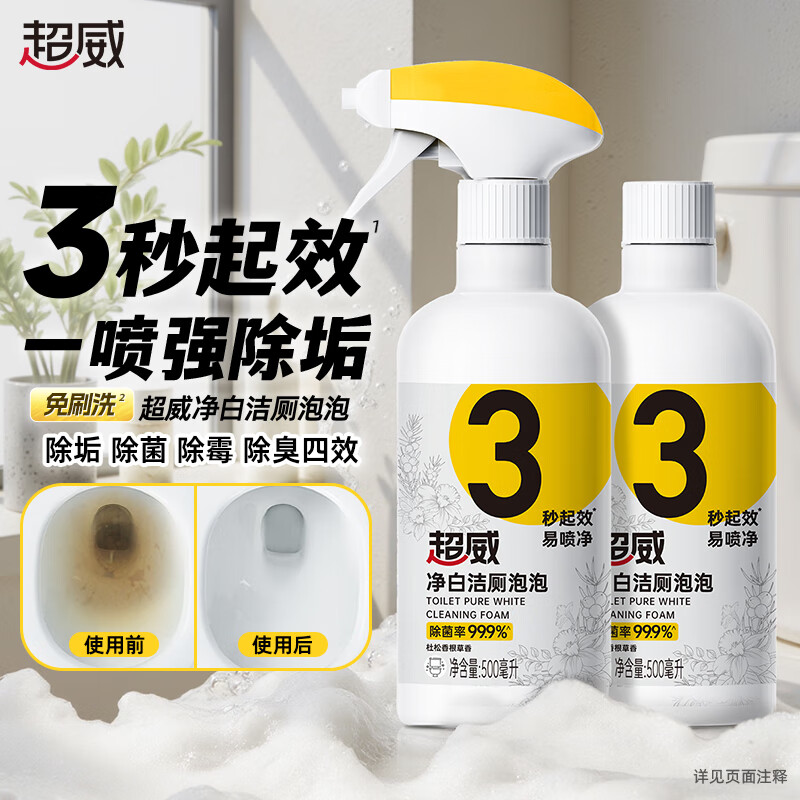 超威洁厕泡泡500ml*2除菌除垢马桶清洁剂除霉除臭免刷洗洁厕灵洁厕液