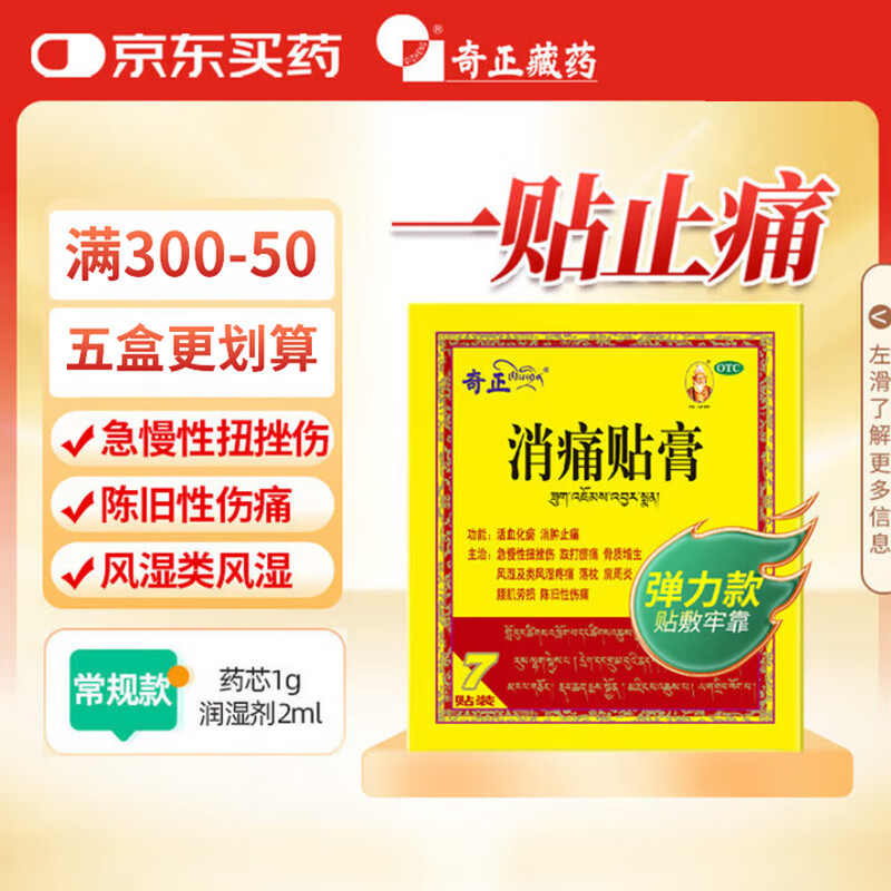 奇正奇正藏药 消痛贴膏(弹力胶布款) 7贴/盒 扭挫伤 跌打瘀痛 骨质增生 类风湿 落枕 肩周炎 腰肌劳损