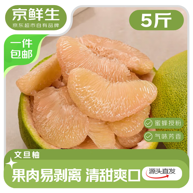 京鲜生 福建莆田度尾文旦柚5斤装 单果1.2-2斤 生鲜水果 源头直发包邮