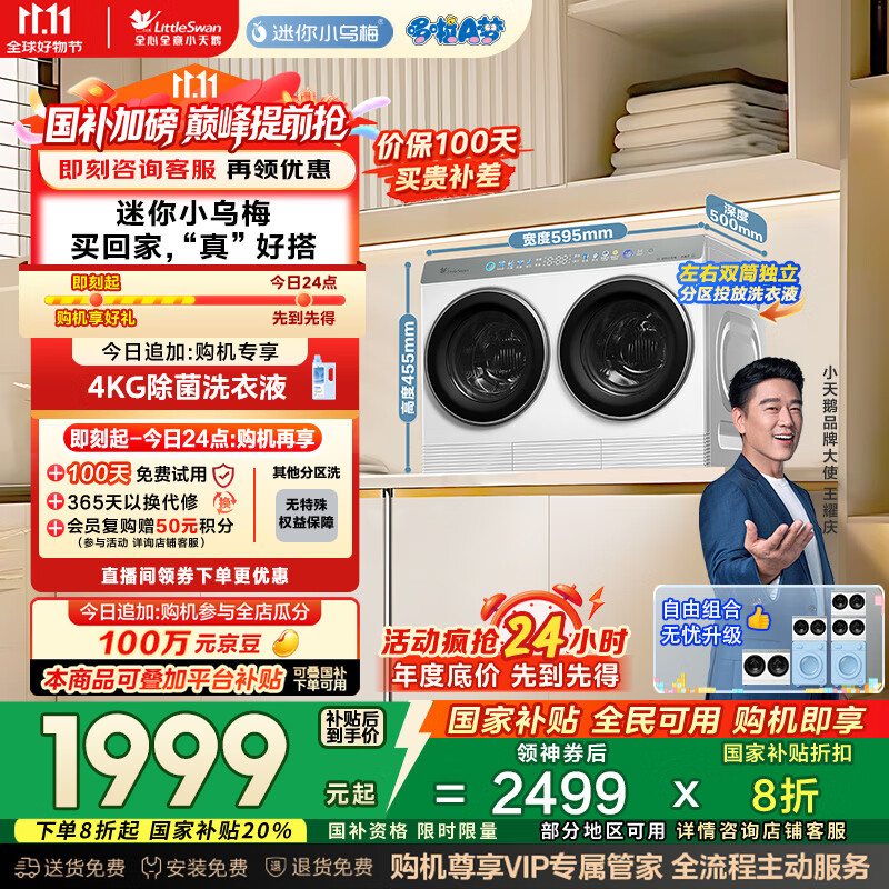 小天鹅(LittleSwan)双筒分区洗 可组懒人三筒 哆啦A梦联名款【迷你小乌梅】洗烘一体 内衣洗衣机 TNDD20-08AIDEW