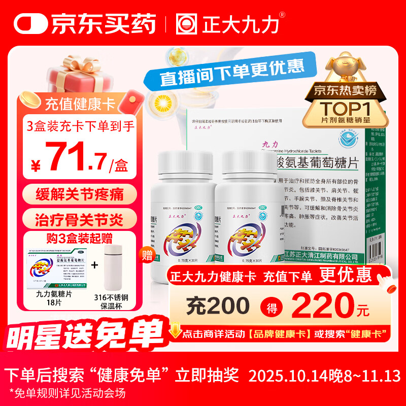 正大九力盐酸氨基葡萄糖片0.75g*30片*2瓶 治疗和预防全身部位的骨关节炎缓解疼痛肿胀胶囊氨糖