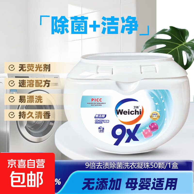 Weichi卫驰9X洗衣凝珠洁净杀菌除螨浓缩除菌洗衣液消毒水二合一 【必囤套装】一盒8g*50粒 | 96h抑菌