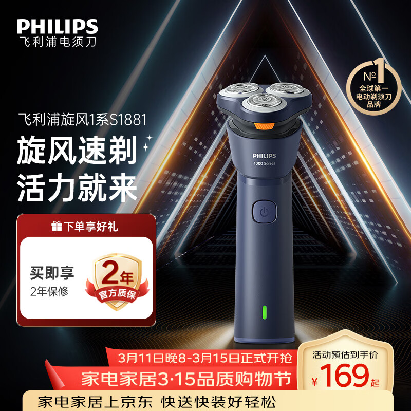 飞利浦电动剃须刀新一代旋风1系刮胡刀 风驰切剃3D浮动刀头 生日礼物送男生男友老公父亲