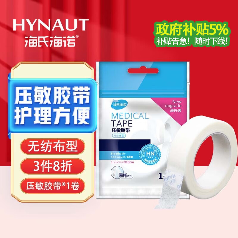 海氏海诺医用胶布纸质无纺布透气压敏胶带胶贴固定包扎1.25*910cm/卷凑单