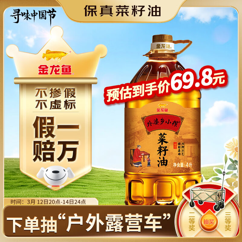 金龙鱼 食用油【保真菜籽油】非转基因 压榨外婆乡 小榨 菜籽油 4L