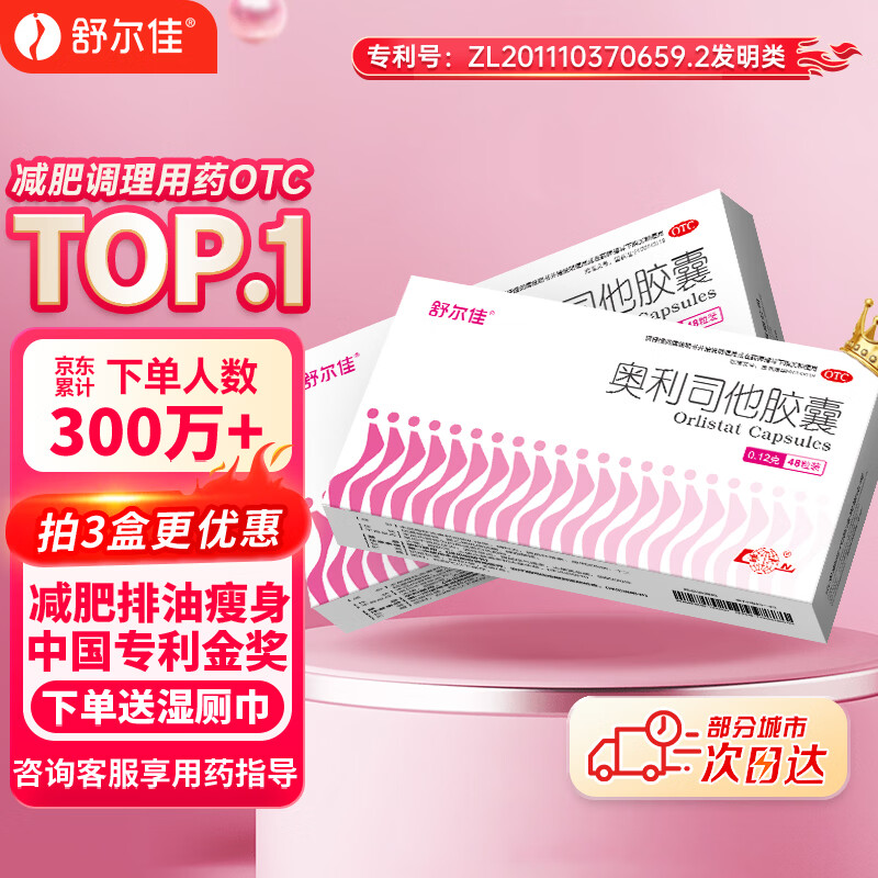 舒尔佳奥利司他胶囊120mg*48粒 减脂减重 排油瘦身 治疗肥胖 国药准字 减肥药 中国专利金奖 抑制脂肪 塑身