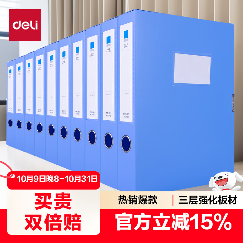 得力(deli)10只55mm文件盒档案盒资料盒加厚办公财务文件资料票据试卷收纳 27706 蓝色