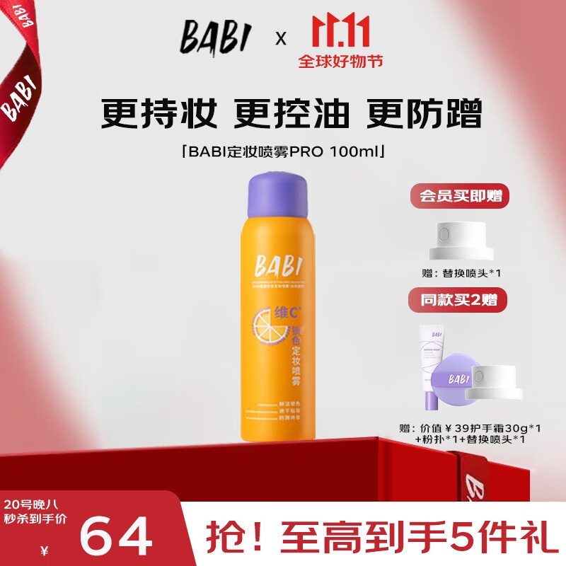 BABI定妆喷雾送女友芭必防蹭持久不脱妆VC控油礼物100ml