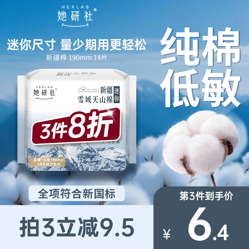 她研社新疆棉迷你卫生巾日用护垫190mm14片超薄纯棉姨妈巾京东自营