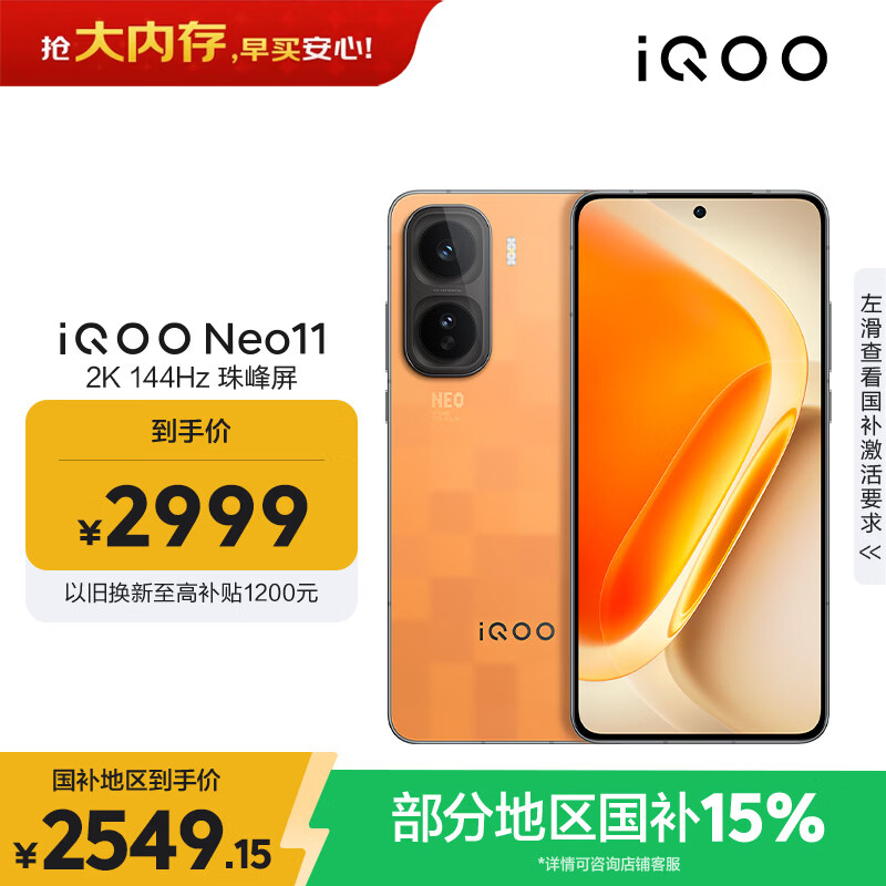 vivo iQOO Neo11 12GB+512GB像素方橙2K 144Hz珠峰屏 骁龙8至尊版 国家补贴iqooneo11学生游戏电竞手机