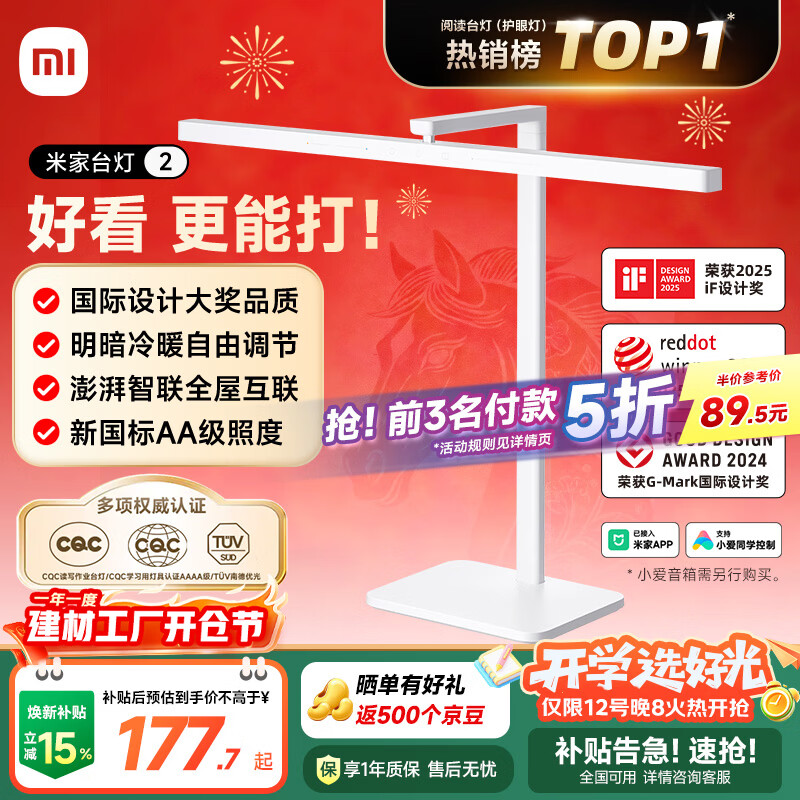米家小米台灯2 智能护眼学习台灯灯具 儿童学习阅读灯卧室书房