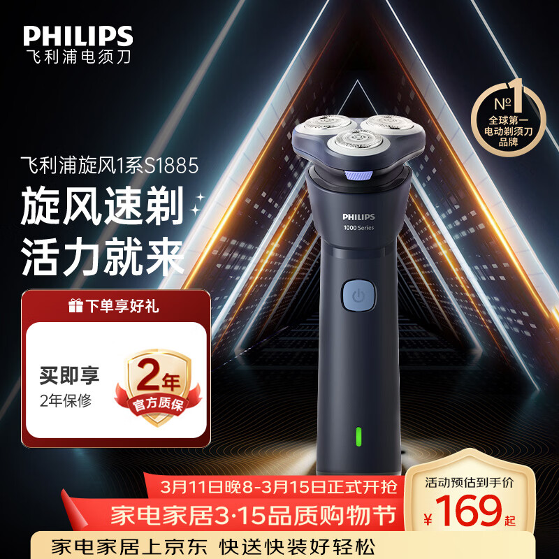 飞利浦电动剃须刀新一代旋风1系刮胡刀 风驰切剃3D浮动刀头 生日礼物送男生老公父亲