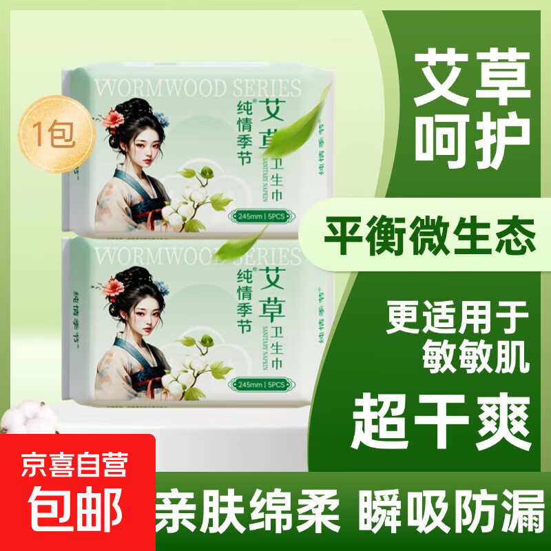 纯情季节艾草卫生巾绵柔亲肤组合贴心超薄透气 棉柔 245mm 5片 日用1包