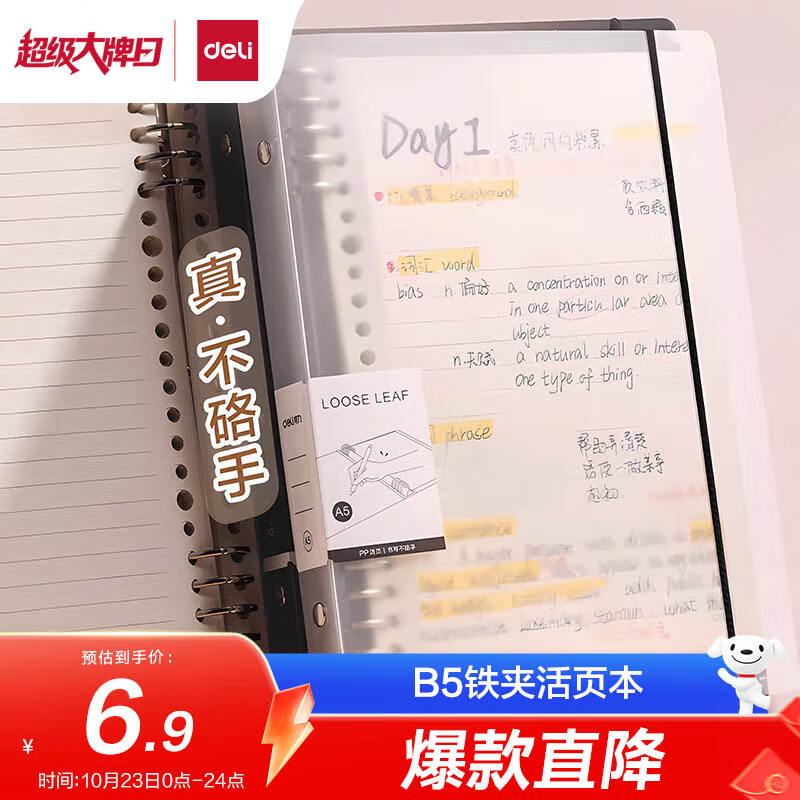 得力(deli)B5/60张活页本笔记本子作业本可拆卸横线学生线圈本记事本考研日记本HB560