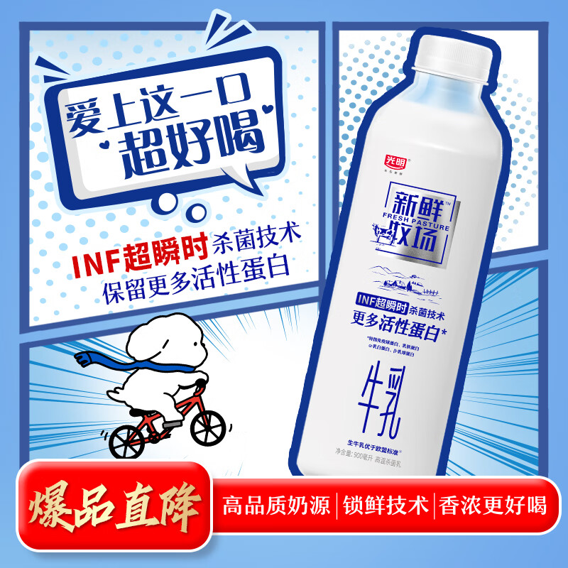 光明鲜牛奶新鲜牧场 INF超瞬时 900ml高品质牛乳