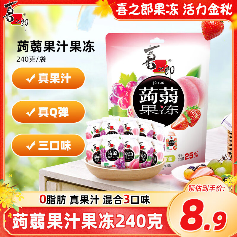 喜之郎蒟蒻果冻20克x12包共240g40%果汁3口味 魔芋0脂肪 休闲儿童零食