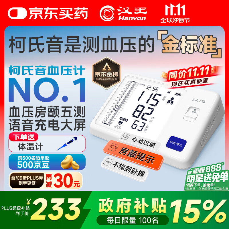 汉王(Hanvon)柯氏音法电子血压计医用房颤高精准测量仪血压仪家用老人KSY3610