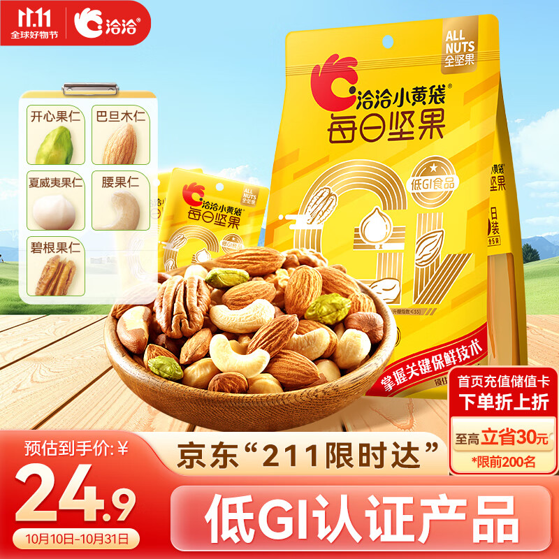 洽洽低GI纯坚果100g/5日装每日坚果混合干果仁低升糖孕妇健身营养零食