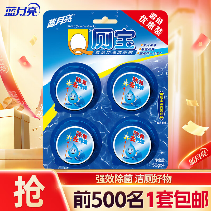蓝月亮Q厕宝套装 洁厕宝 蓝泡泡 马桶清洁剂 除臭除菌 耐用 松木香 厕宝4块(4*1)