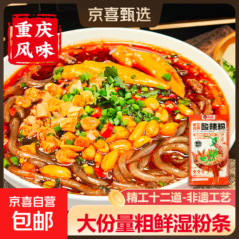 重庆特产红薯酸辣粉263g七包料非油炸免煮冲泡方便速食 鱼小妹袋装酸辣粉263g*1包