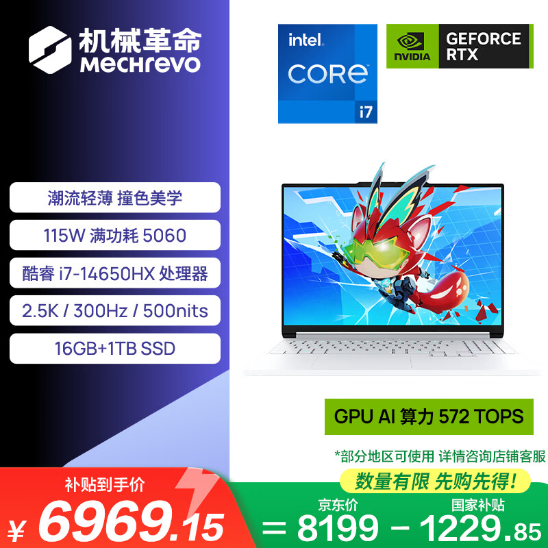 机械革命【国家补贴】极光X潮玩版 酷睿i7HX 游戏本笔记本电脑(i7-14650HX 16G 1T RTX5060 300Hz 白)