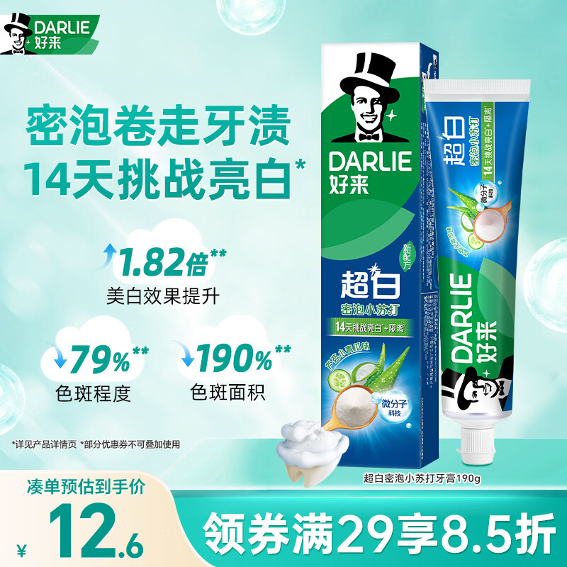 好来(DARLIE)【白鹿推荐】超白密泡小苏打牙膏亮白去黄芦荟小青瓜190g新旧包装